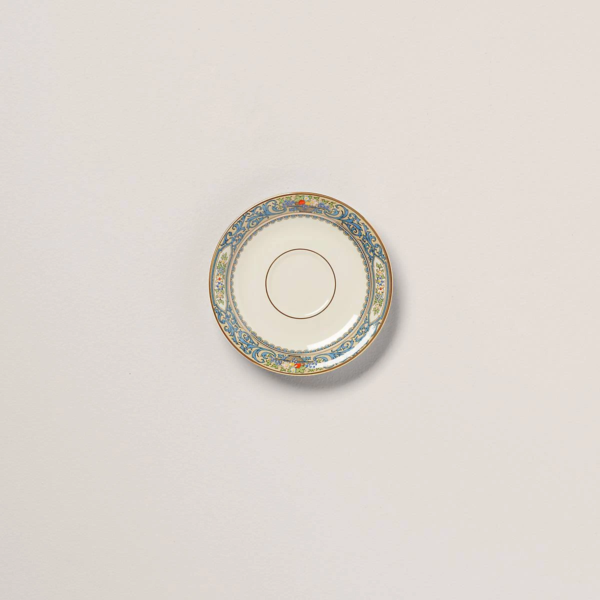 Ideal for a lavish and upscale tea time, rest a teacup on the Autumn Saucer. This dishwasher-safe, durable bone china dish features hand-applied enamel dots to create a cornucopia of fruit and flowers and is accented in 24 karat gold.