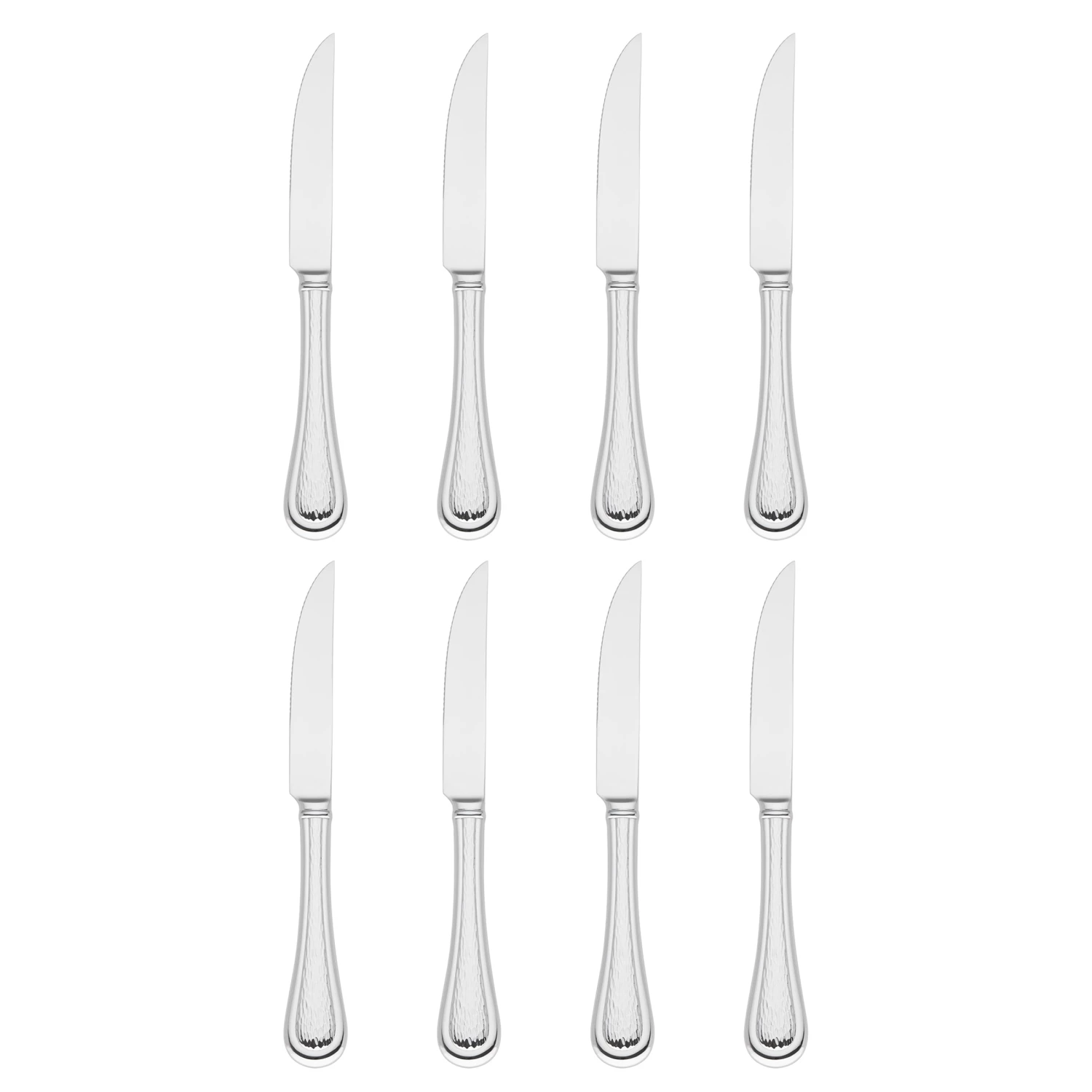 Expertly crafted of rust-resistant, 18/10 stainless steel, this Barlowe 8-piece steak knife set will maintain its shine year after year. The rounded handles are topped off with a textured finish for distinguished style. Plus, it’s dishwasher safe for added convenience.