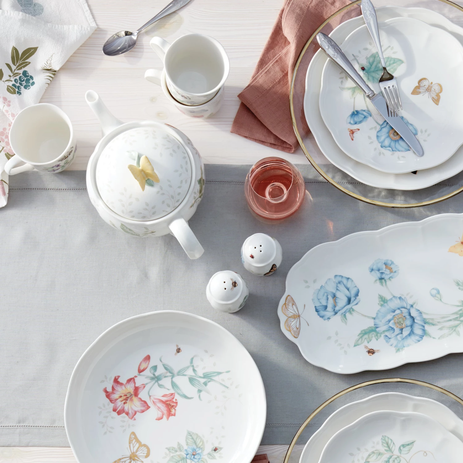 Now in bloom. The Butterfly Meadow Turquoise 4-piece Mug Set features the sturdy, scalloped porcelain design of original Butterfly Meadow mug, but with gorgeous flowers in turquoise shades. These porcelain mugs are both dishwasher and microwave safe.