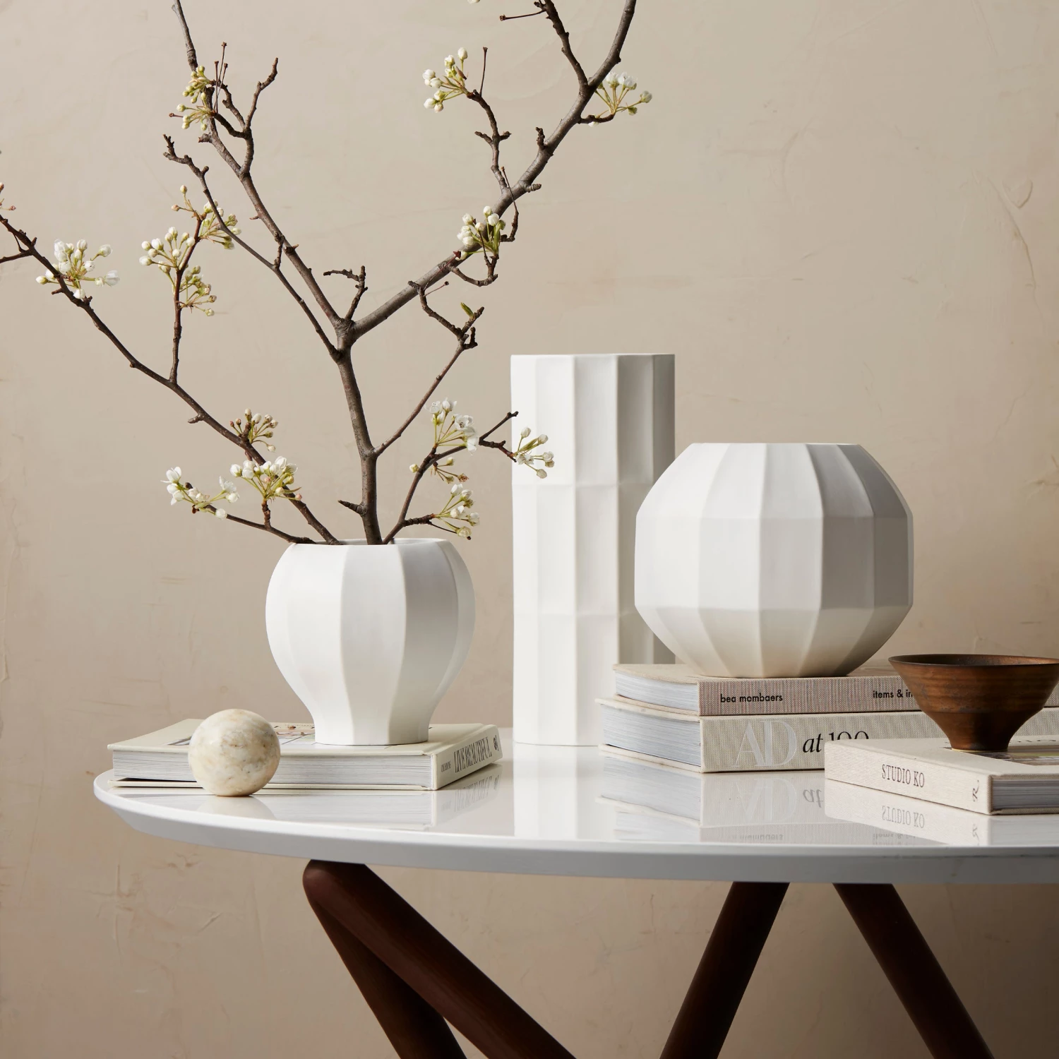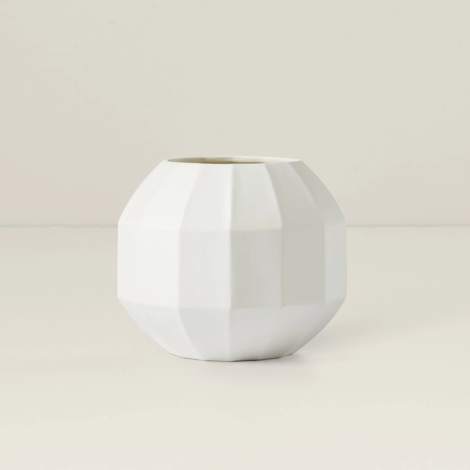 This timeless vases does double duty as a stunning home statement and catch-all accent. Featuring a faceted design, its geometric-inspired appearance speaks to modern style. Made of porcelain and finished with a satin glaze.