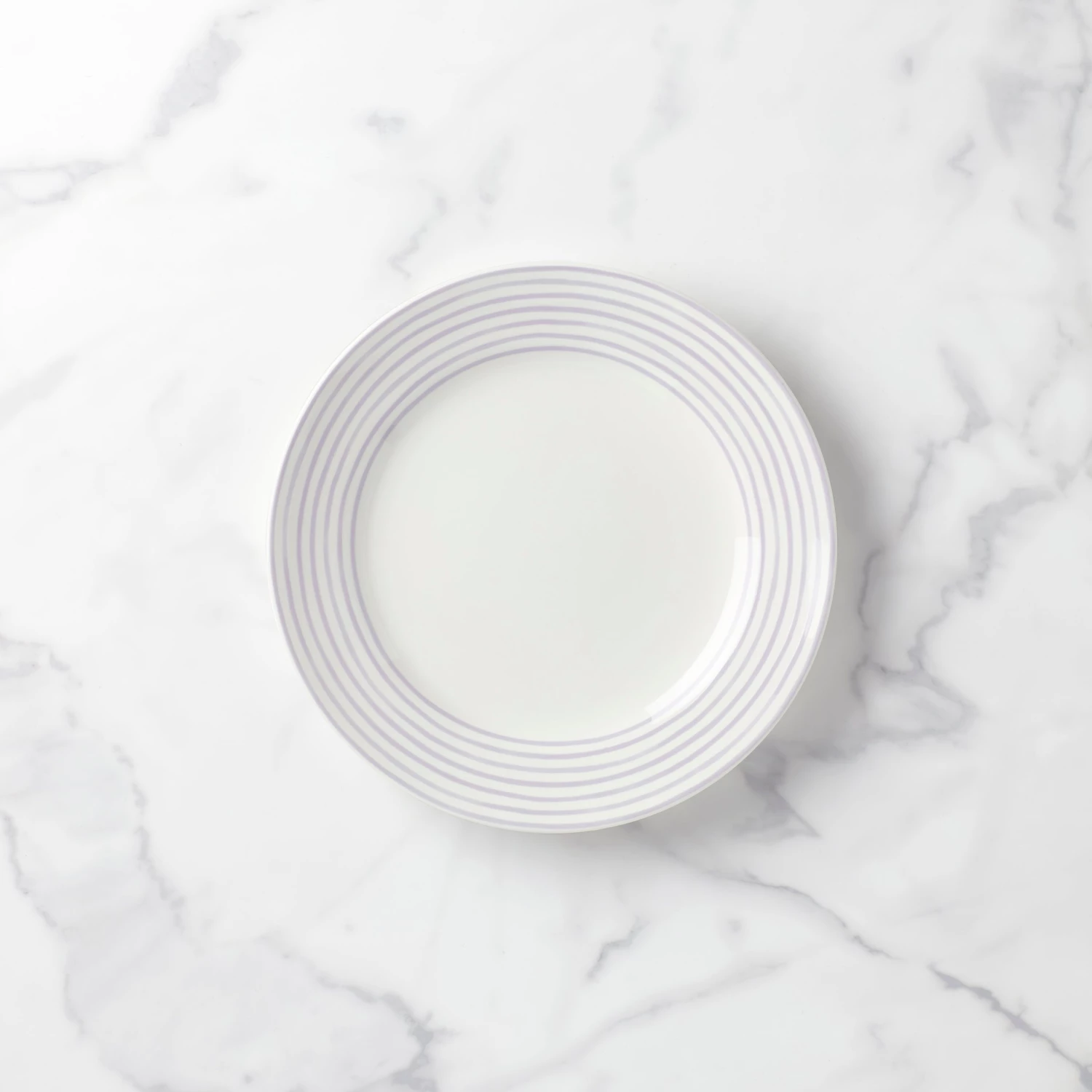 Kate Spade New York’s Charlotte Street East dinner plate is crafted of fine porcelain that’s both dishwasher and microwave safe. (how convenient is that?) And the playful lilac stripes on this piece are hand-drawn for an extra special finishing touch.