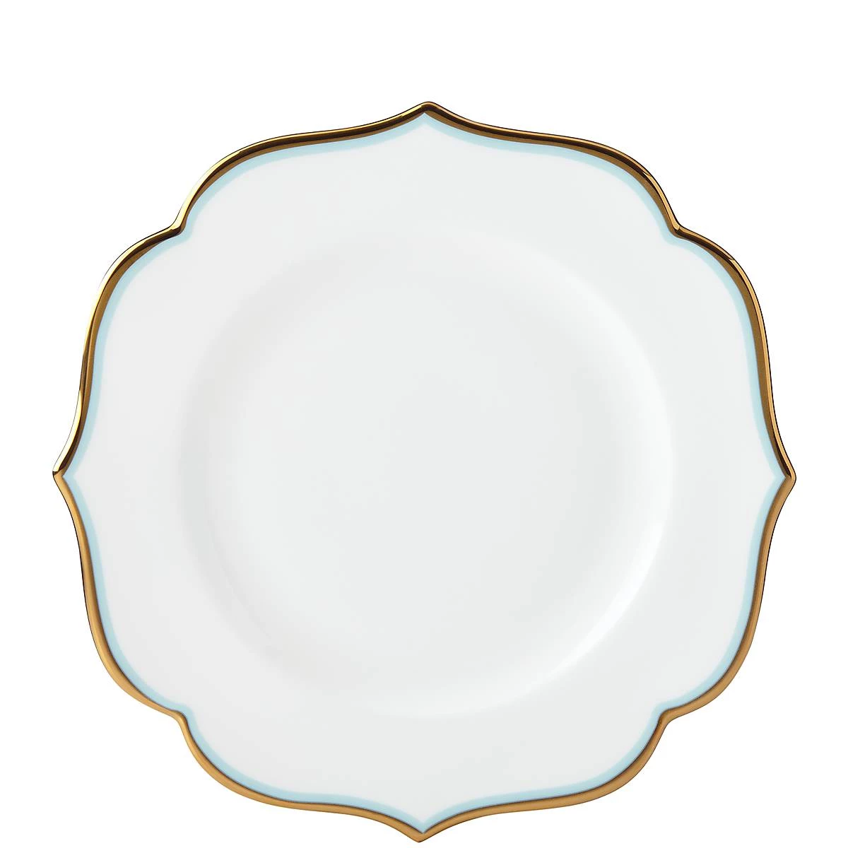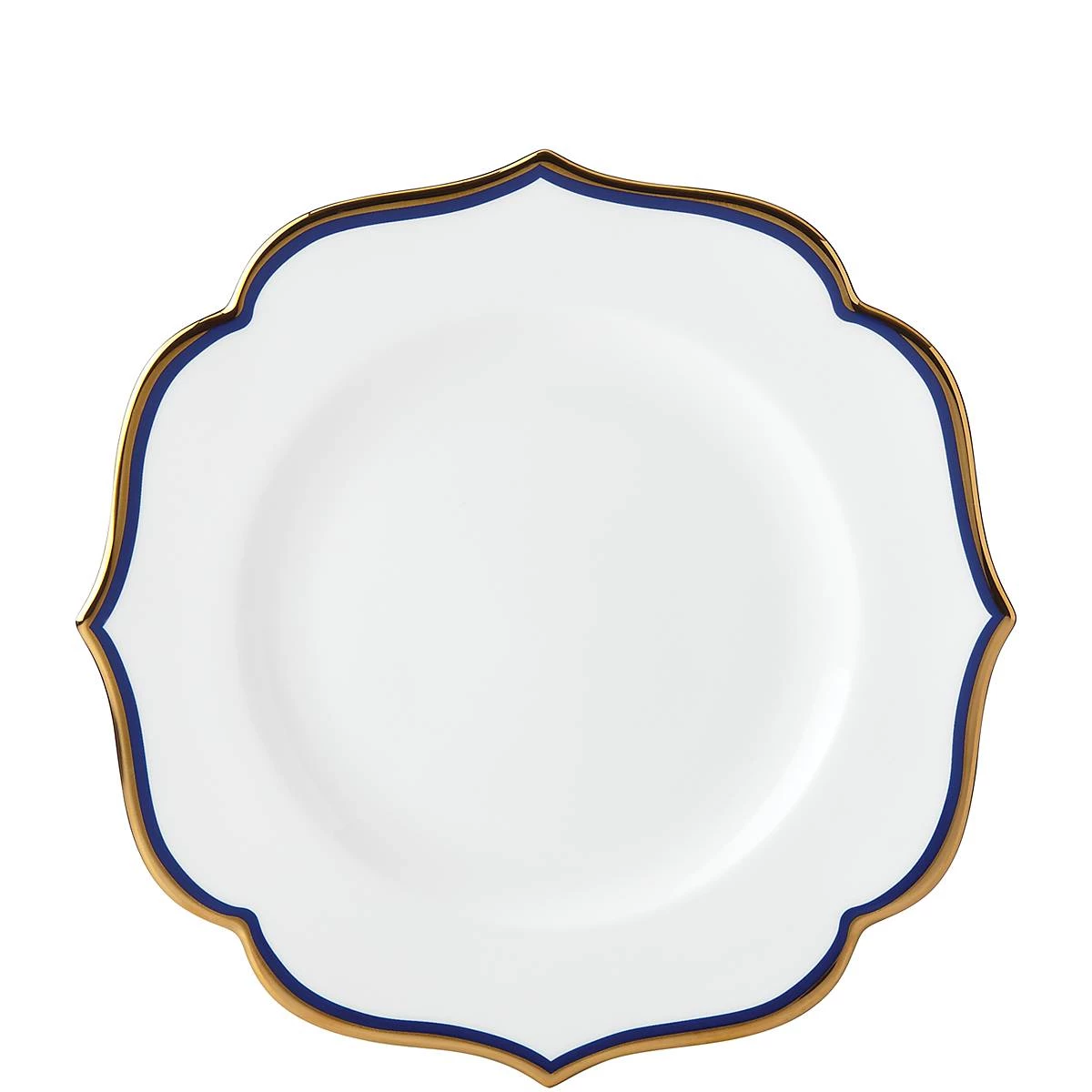 Crafted of durable bone china, the Contempo Luxe Sapphire Accent Plate is ideal for side salads or sandwiches. This plate features an enchanting blue color profile, with innovative microwave-safe gold accents encompassing its scalloped rim. This dishwasher-safe plate functions well with formal and casual dinnerware.