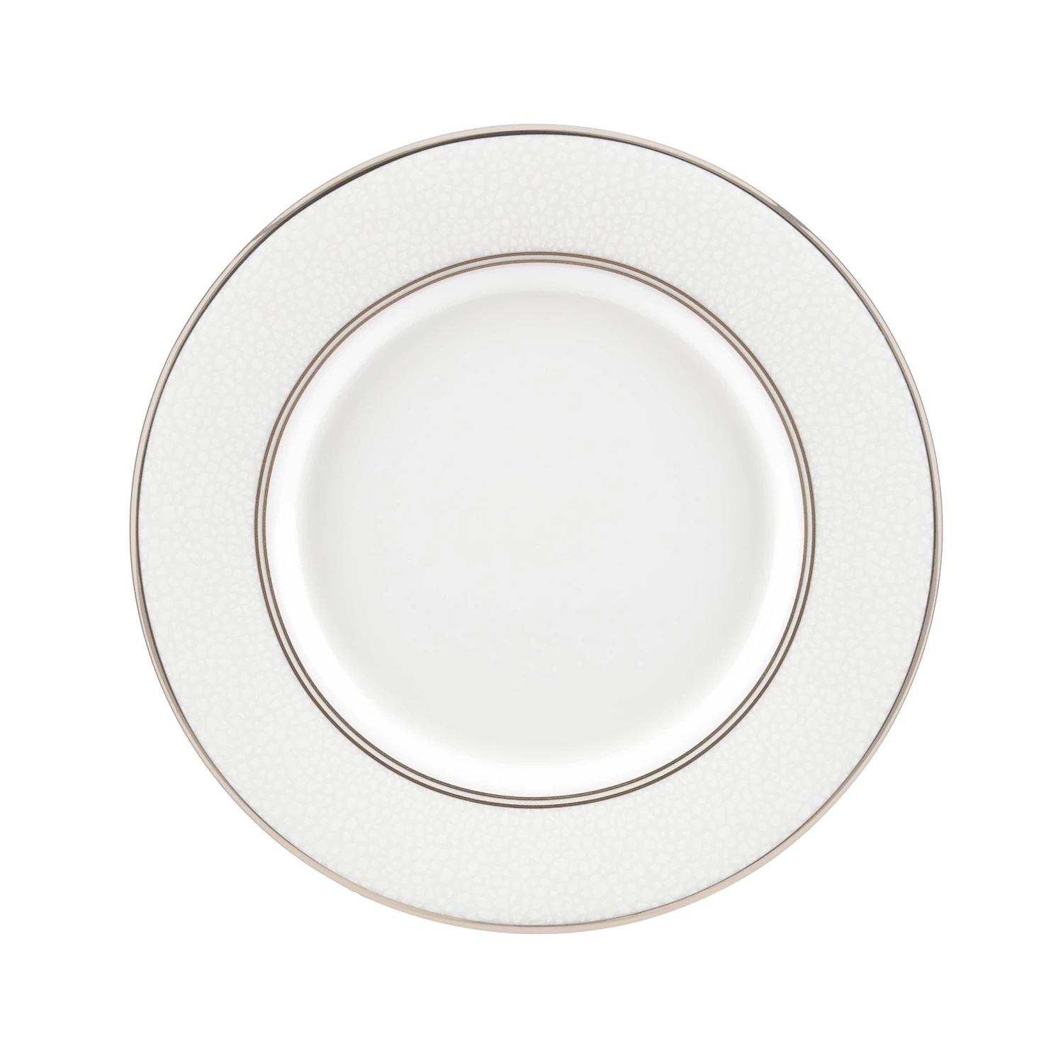 This durable white bone china collection features a delicate band of detail along the rim that is reminiscent of a cobblestone pathway. From Kate Spade New York, the Cypress Point Saucer features precious platinum accents, and is dishwasher-safe.