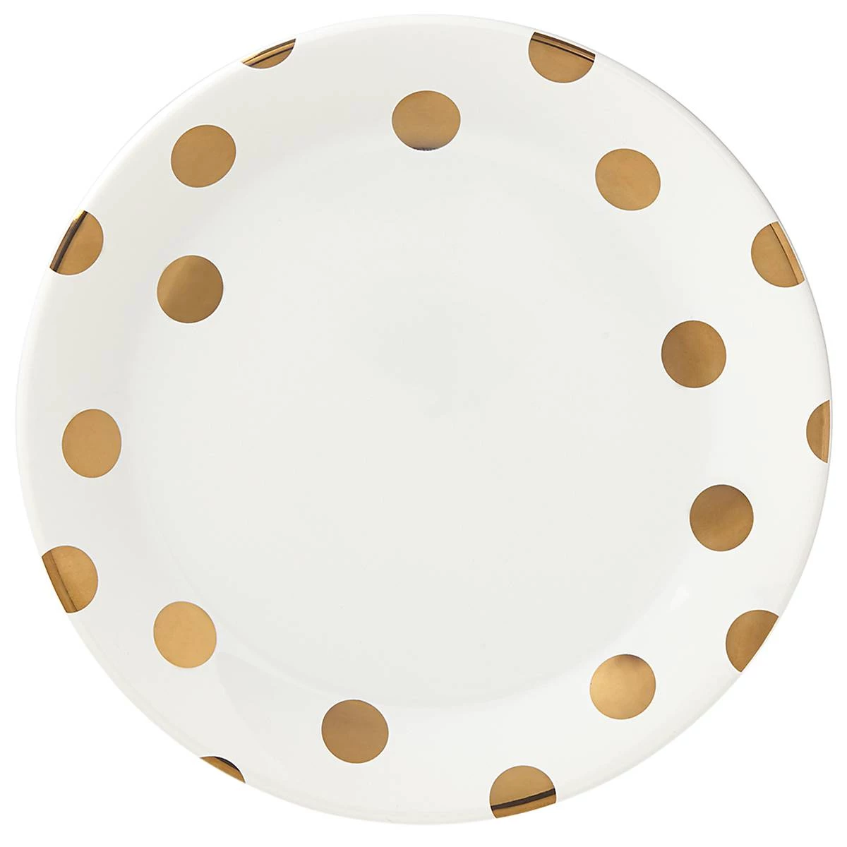 Decorated with a smattering of polka dots, this pretty piece by Kate Spade New York is equal parts playful and chic, and is perfect for any table setting. Crafted of durable ceramic stoneware, the Deco Dot Gold Dinner Plate is microwave and dishwasher-safe.