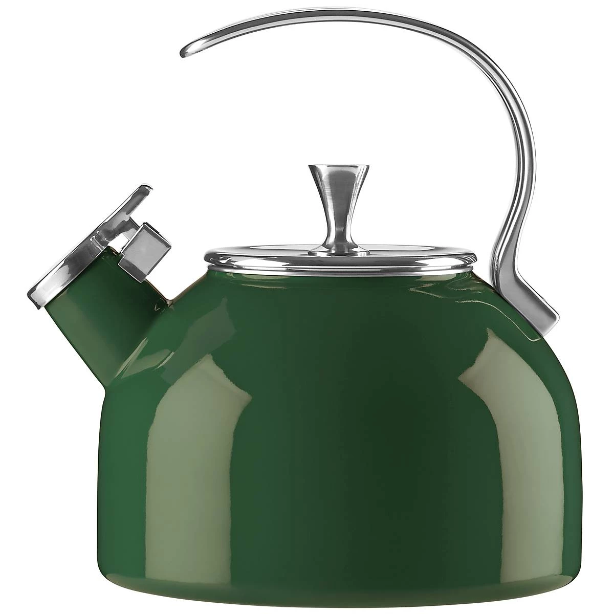 Sip and serve in style with this sleek tea kettle from Kate Spade New York. The polished enamel surface delivers a healthy dose of classic charm that you love. The bonus? It features a cute little “Whistle While You Work” message at the spout for a bit of cheeky fun.