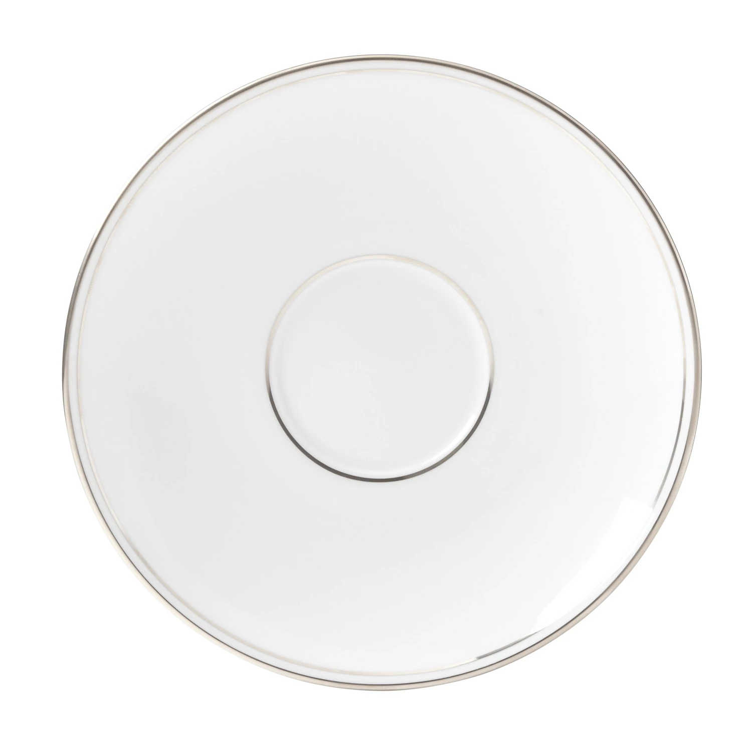 Rest a teacup on the stylish and impressive Federal Platinum Coupe Saucer. This dishwasher-safe, durable white bone china tea saucer is accented in precious, breathtaking platinum. Available only at Bed Bath & Beyond and Lenox.com.