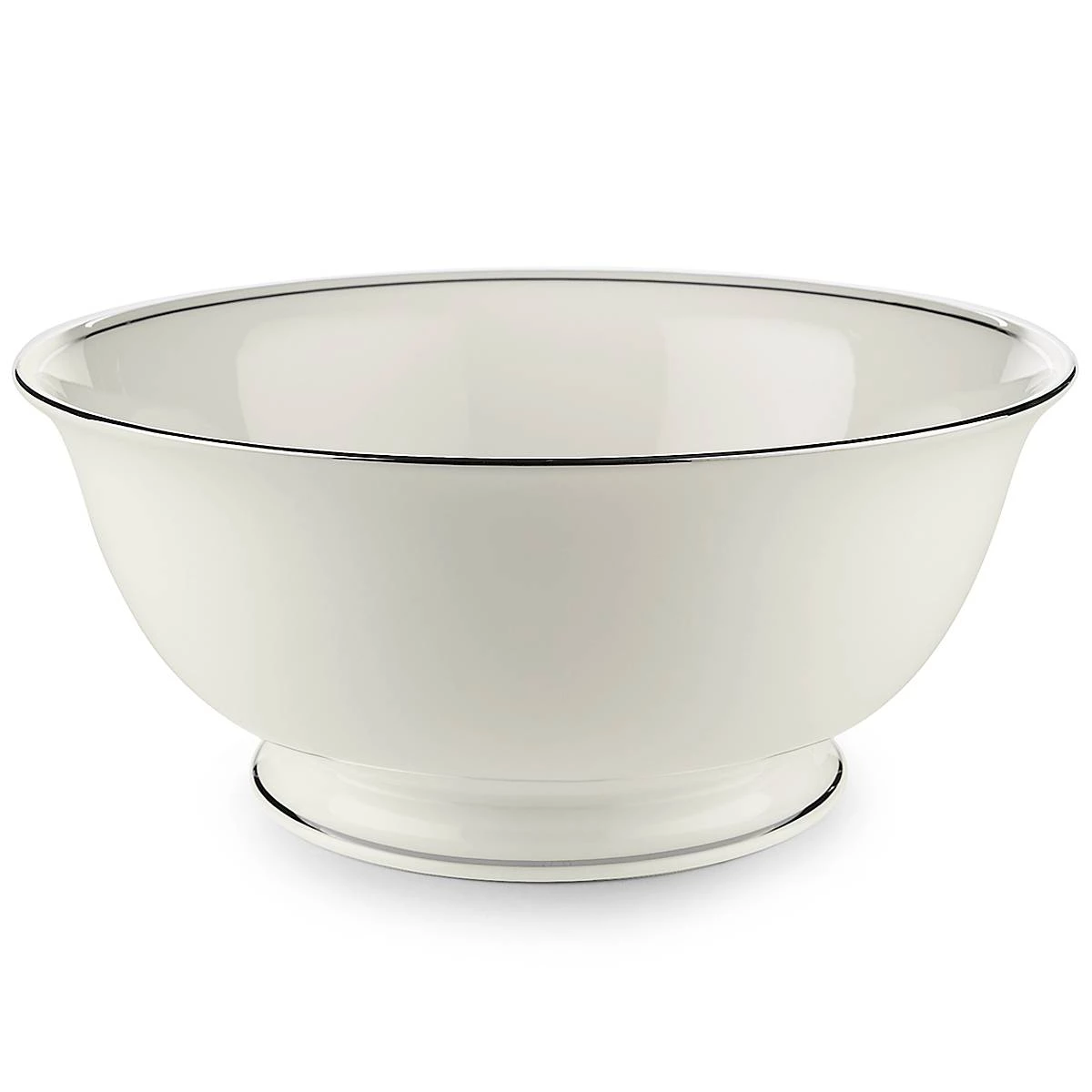 Part of the Federal Platinum Collection, this large serving bowl is crafted of durable porcelain and is accented with gossamer ribbons of precious platinum that provide a delicate contrast to the smooth exterior. This item is dishwasher-safe, for added convenience.