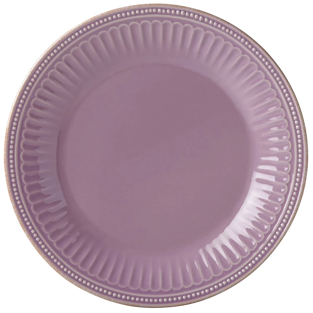 This durable violet ceramic stoneware dinner plate includes a gentle border of petite beads that adds a light, elegant texture, while the hand-applied tea-stain along the plate’s rim adds a rustic feel. This item is microwave and dishwasher-safe, for added convenience.