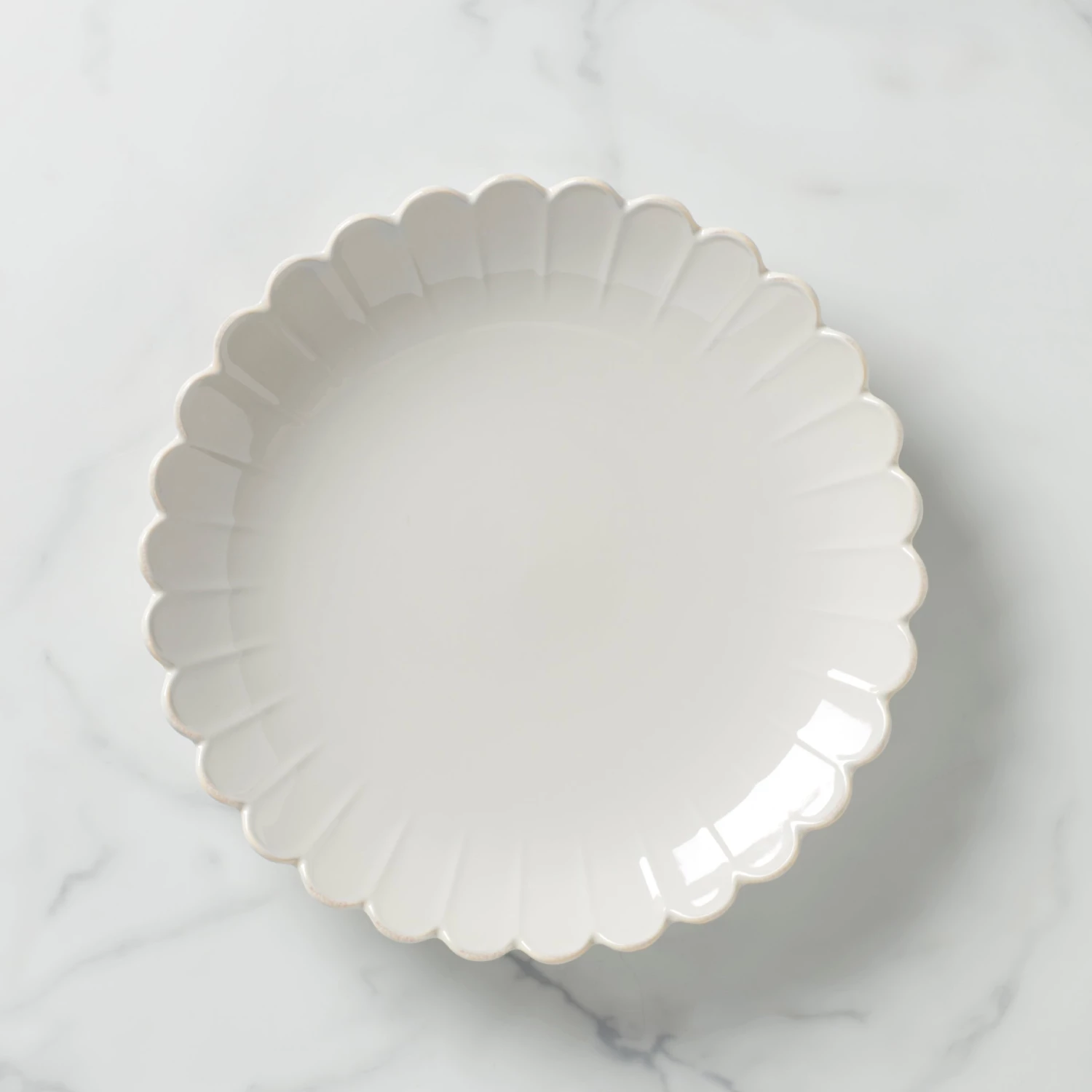 Introducing a fresh and feminine new design to celebrate the 10 year anniversary of French Perle! This round platter is a twist on the classic country look with its clean, elegant motif, beautiful ruffles and tea-stained finish. For distinct cafe charm, mix French Perle Scallop with any of our other coordinating collections, like Classic, Groove and Bead. Bon appetit!