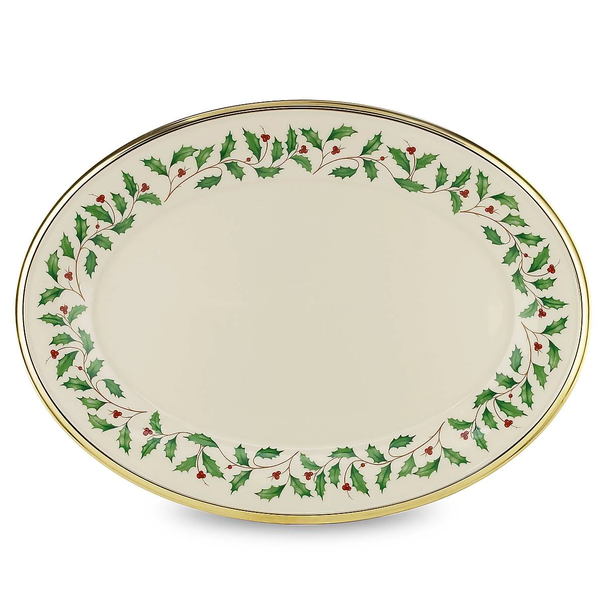 Part of the time-honored Lenox Holiday Dinnerware Collection, our holly and berry motif adorns the surface of this Holiday Oval Platter. Crafted from porcelain with a rich, 24-karat gold trim for an opulent, holiday-themed tableware addition.