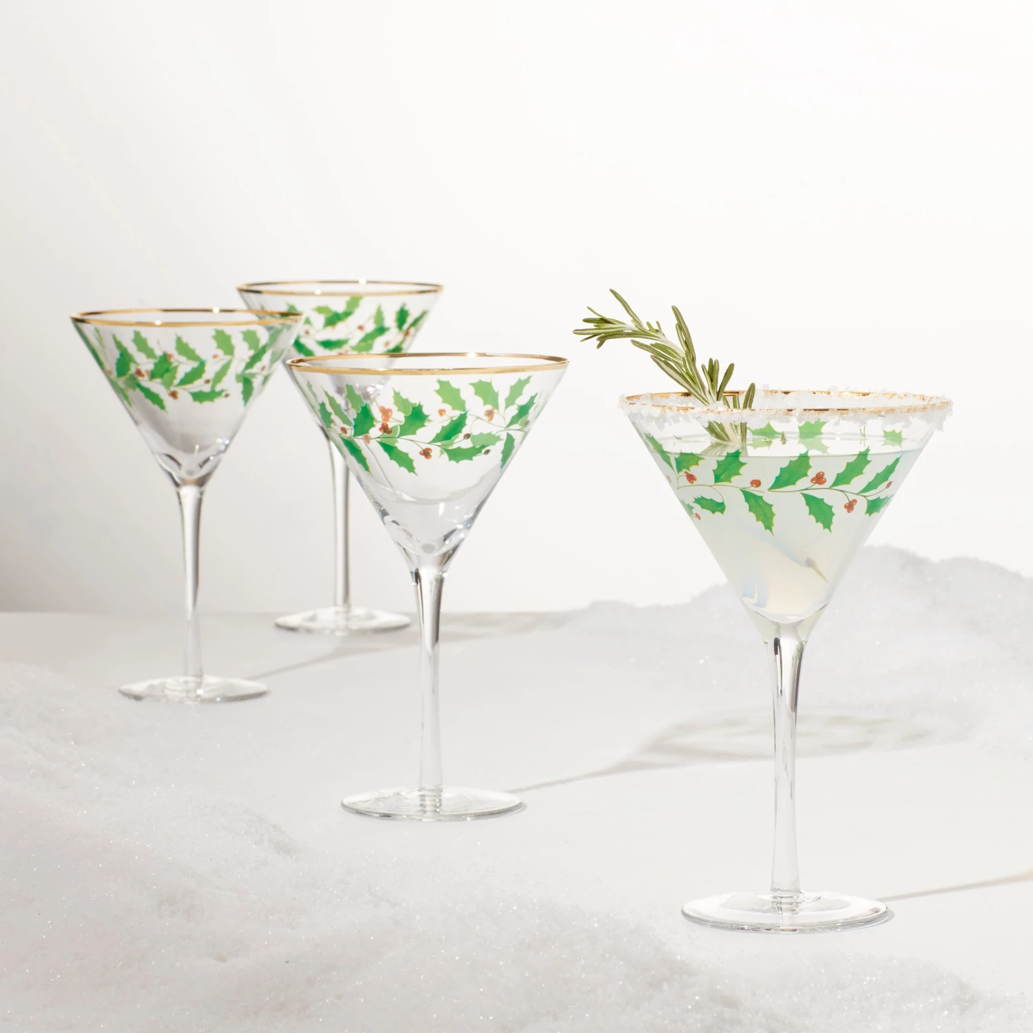 Cheers to Christmas spirits! Celebrate the holiday season with this set of four stunning martini glasses featuring a decal of our iconic Holiday holly and berry pattern. It’s the perfect gift for the host in the family!