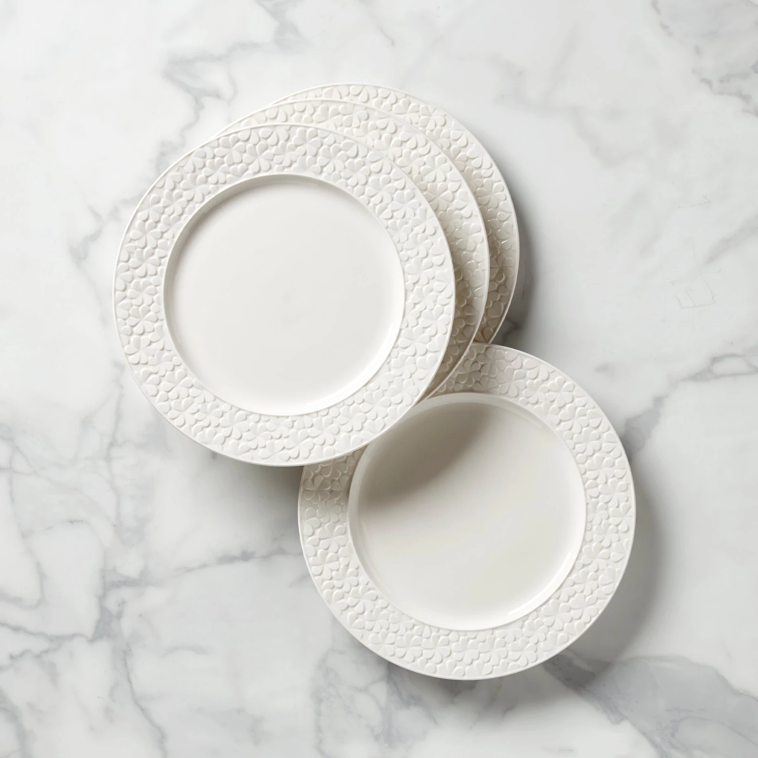 This elegant dinner plate set nods to a Kate Spade New York staple: flowers! See how they’re delicately carved into the porcelain?