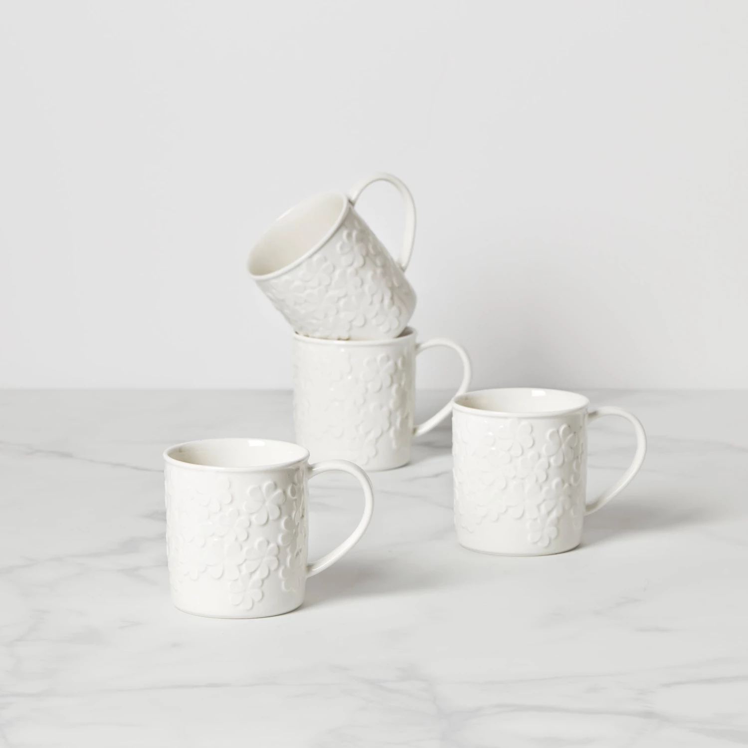 SKU: 4756429013089 Categories: Dinnerware, Eat Tags: 4 piece mug set, 4pc mug set, 891948, Allow Expedite Ship, Allow Gift Message, Allow Gift Wrap Flag, banding_desc:Unbanded, blossom lane, color:White