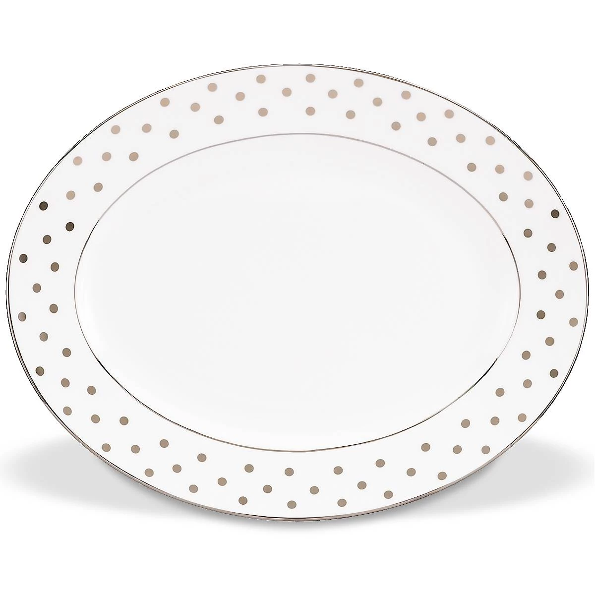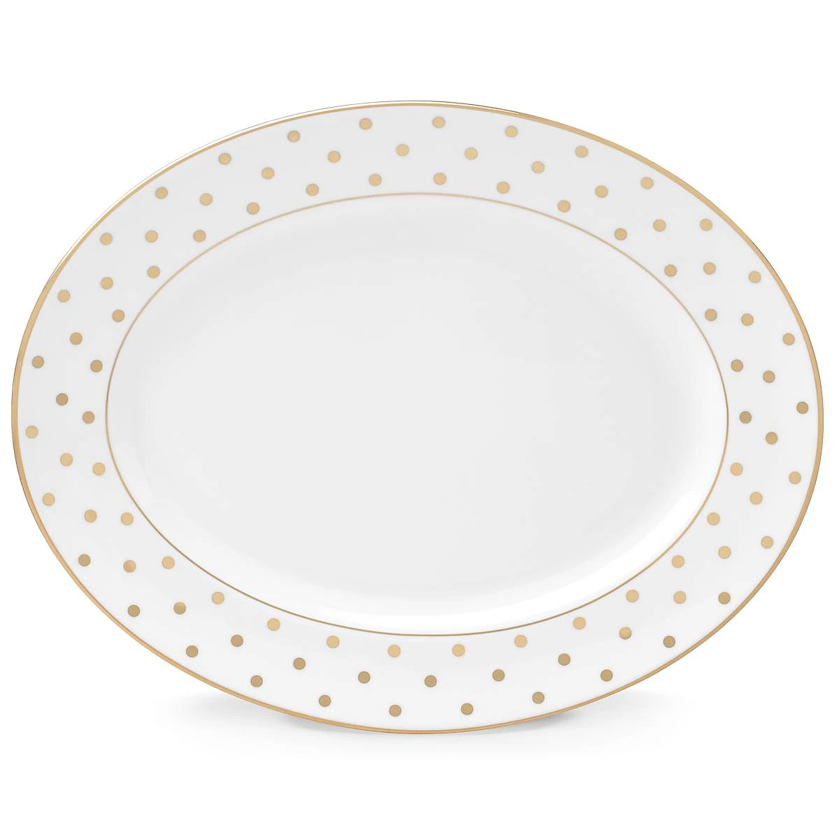 Add a playful dash of polka dots to any meal with our Larabee Road Gold Collection. From Kate Spade New York, this 13″ oval serving platter is crafted from durable white bone china with gold accents, and is dishwasher-safe.