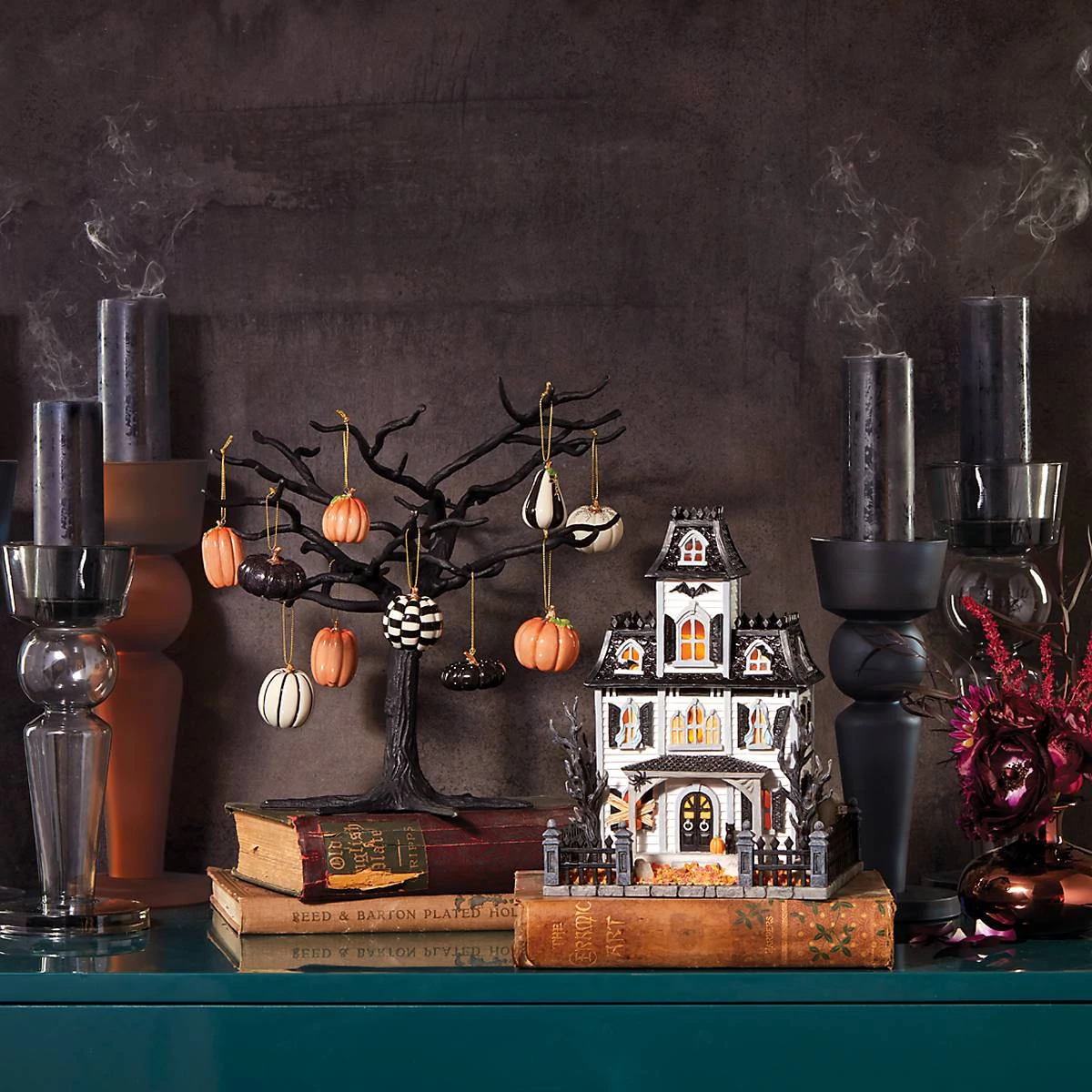 Hang your Halloween and autumn mini ornament sets on this wicked ornament tree. The detailed design features a matte black finish for an alluringly spooky look.