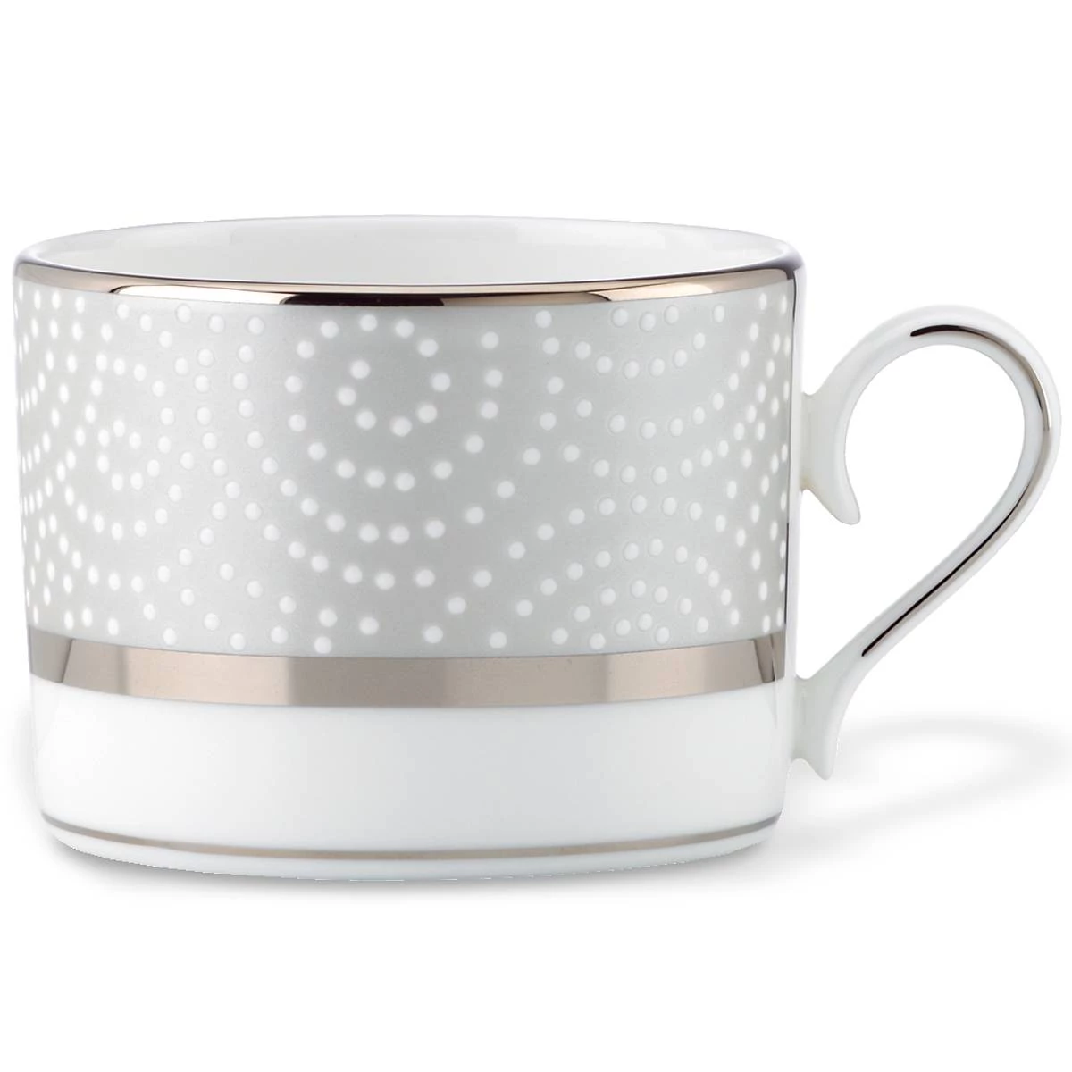 Ideal for a tea time for dessert course, the ornate and elaborate Pearl Beads Cup is framed by a swirling motif of raised white beads inside two concentric circles of precious platinum accenting. This elegant and durable bone china cup is also dishwasher-safe, for added convenience.