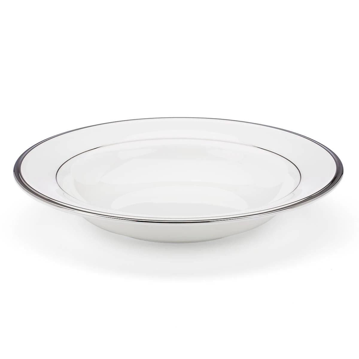 Embellished with precious platinum trim, this Rimmed Bowl is crafted in durable white bone china. From the Solitaire White Collection, this popular dinnerware bears a rich yet simple design, ideal for combining with similar sets. This item is dishwasher-safe, for added convenience.