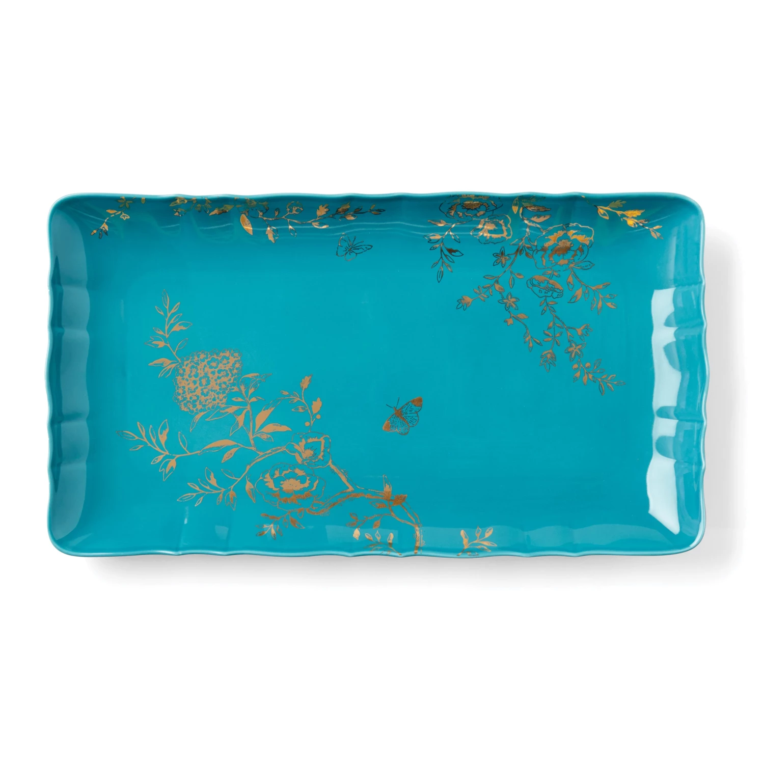Bring the botanicals and butterflies of a lush English garden to your home with the Sprig & Vine collection. Serve just about anything on this beautiful tray featuring patterns inspired by vintage textiles with sweetly scalloped edges.