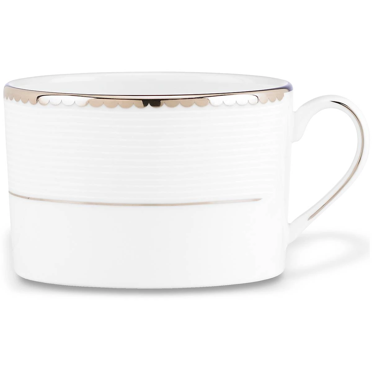 Because every meal — whether it is a multi-course homemade masterpiece or Chinese takeout and cupcakes — deserves a perfectly pretty place setting. Like this cup from the Sugar Pointe Collection, crafted of dishwasher-safe, durable white bone china with precious platinum accents. Bon appetit!