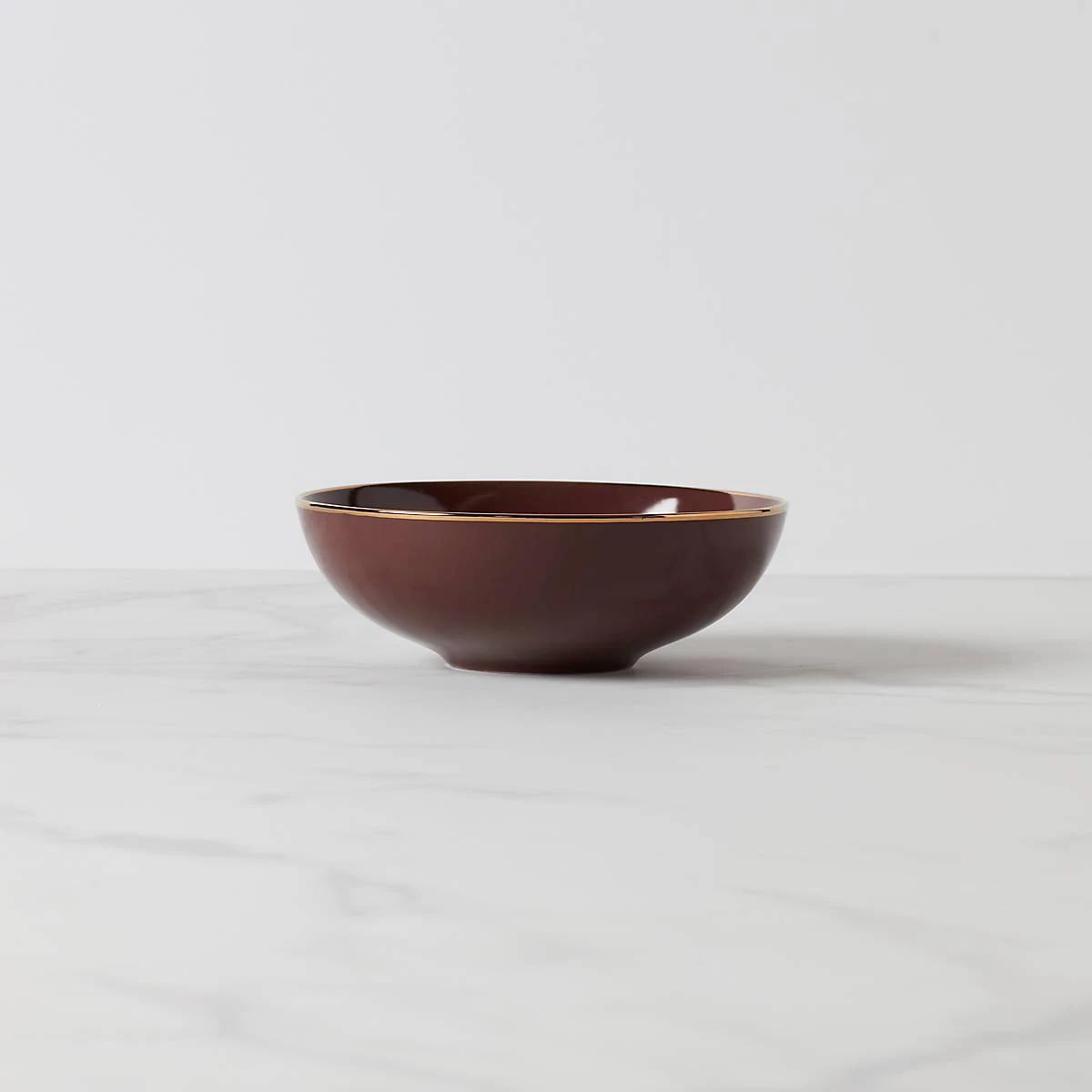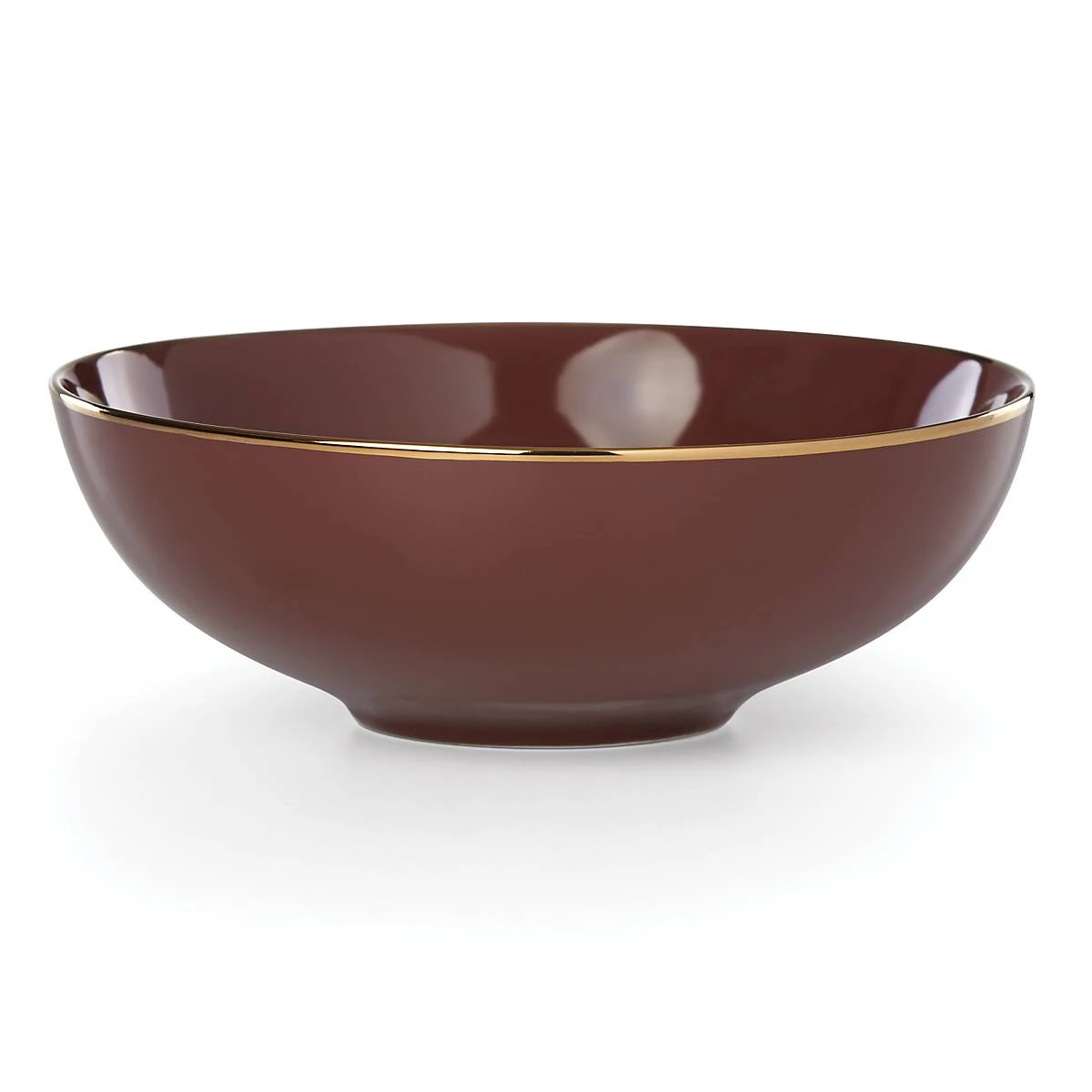 Made from dishwasher-safe, durable ceramic porcelain and microwave-safe gold accents, this fashion-forward piece is ideal for cereal, desserts and soups. The Trianna Taupe All-Purpose Bowl boasts a rich taupe hue with luminous gold accents.