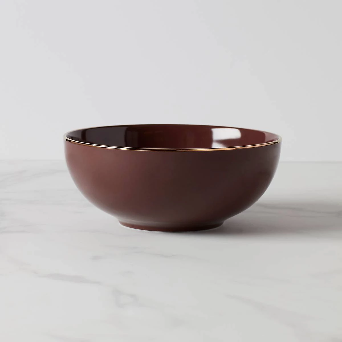 Redefine casual with this taupe-colored medium serving bowl. Its matte exterior provides a touch of contrast to the shimmer inside while the microwave-safe gold-accented rim elevates the bowl from everyday to exceptional. Crafted of durable ceramic porcelain, this item is dishwasher-safe, for added convenience.