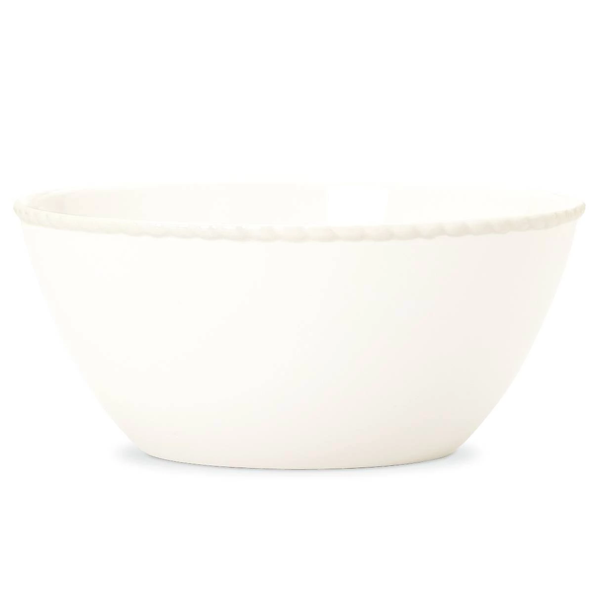 Timeliness with a subtle twist, the Wickford Collection is adorned with a textured rope motif. From Kate Spade New York, the Wickford Fruit Bowl is crafted of durable white ceramic porcelain, and is microwave and dishwasher-safe.