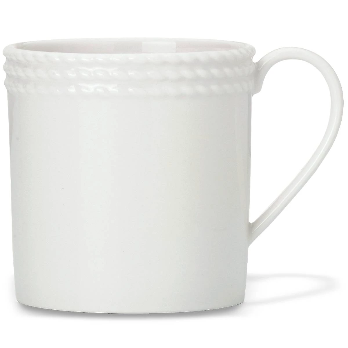 Timeliness with a subtle twist, the Wickford Collection is adorned with a textured rope motif. From Kate Spade New York, the Wickford Mug is crafted of durable white ceramic porcelain, and is microwave and dishwasher-safe.