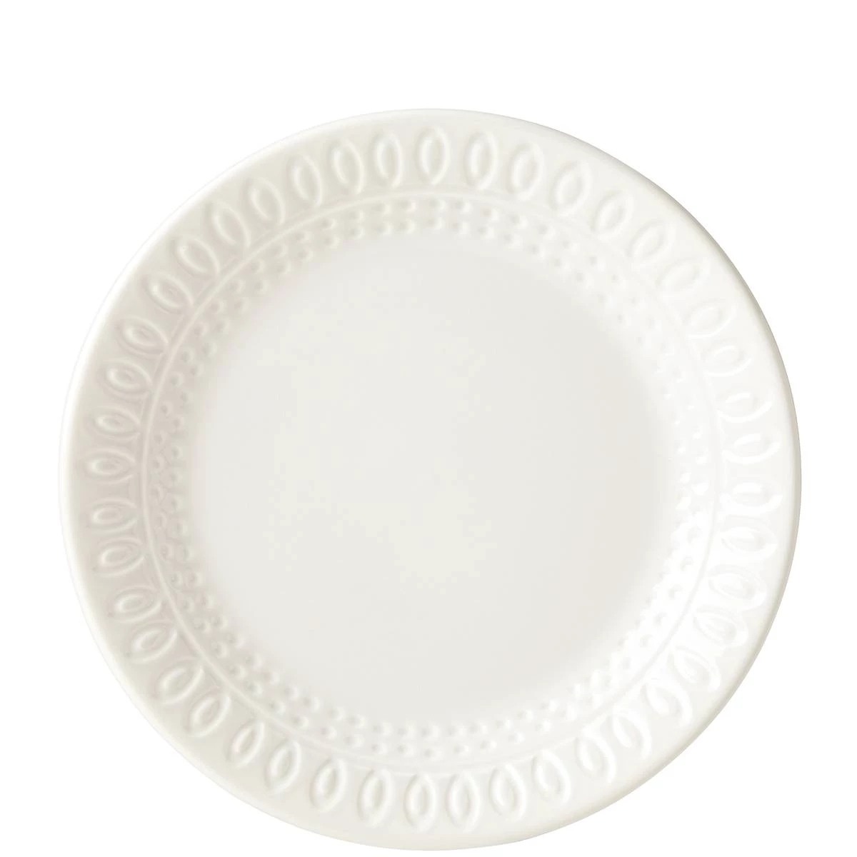 Made from glazed stoneware, the Kate Spade New York Willow Drive Collection is defined by its pretty, eyelet-inspired detail and sets the scene for any meal–whether it’s a homemade, multi-course masterpiece or takeout. The Willow Drive Cream Accent Plate is microwave and dishwasher-safe.