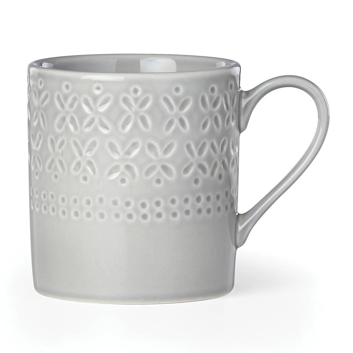 Made from glazed stoneware, the Kate Spade New York Willow Drive Collection is defined by its pretty, eyelet-inspired detail and sets the scene for any meal–whether it’s a homemade, multi-course masterpiece or takeout. The Willow Drive Cream Mug is microwave and dishwasher-safe.