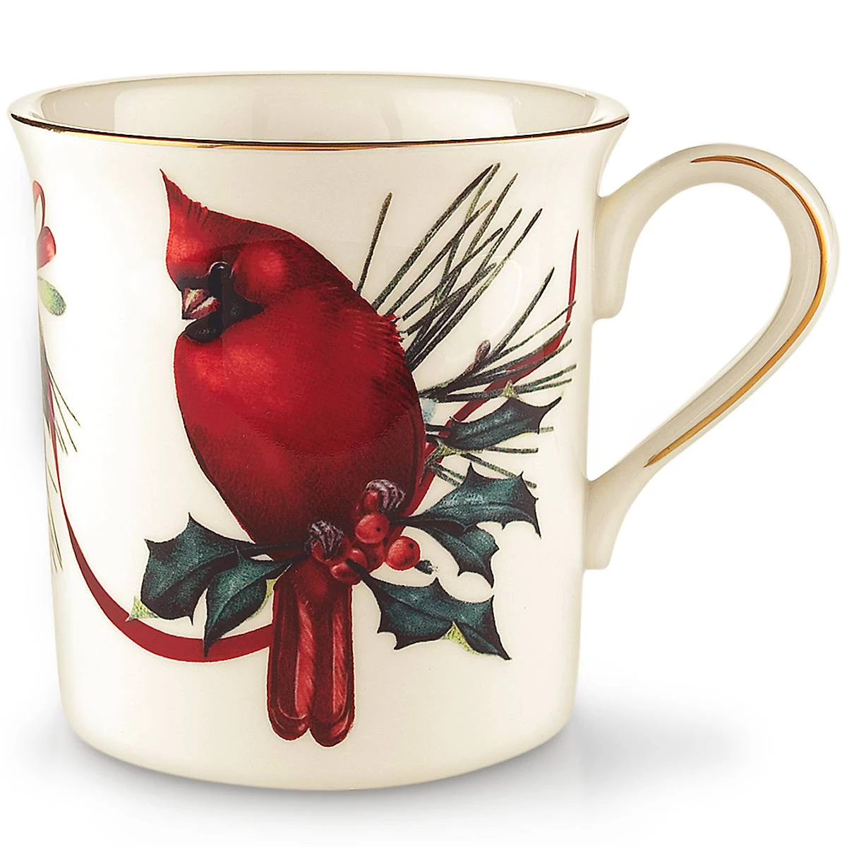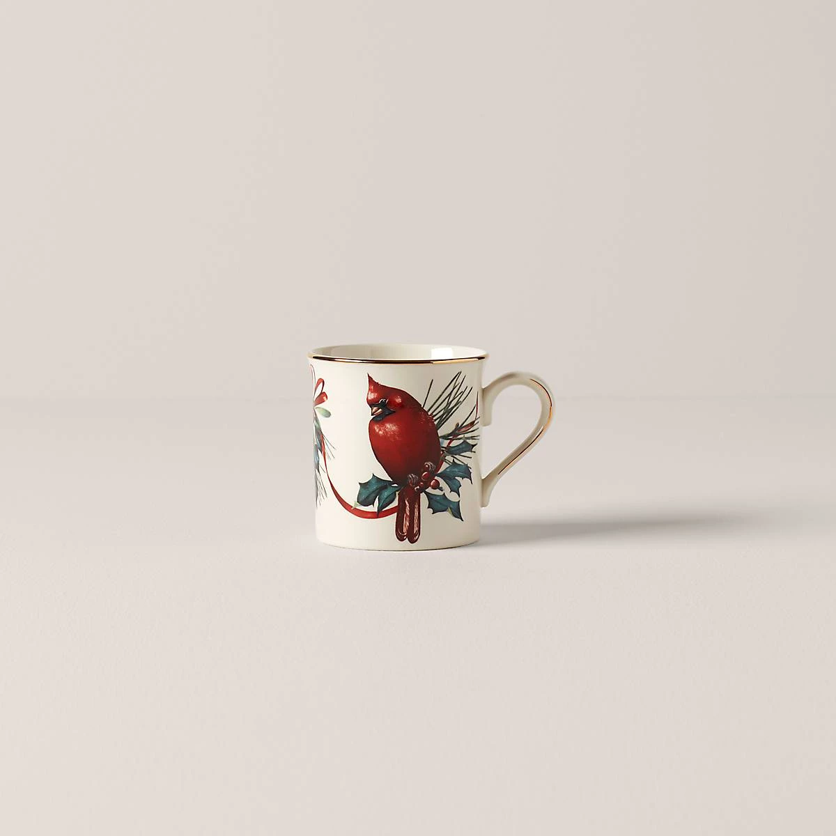 Our classic Winter Greetings Collection features peaceful birds perched amidst a motif of pinecone, holly and mistletoe. Crafted from durable porcelain with 24k gold accents, this mug makes an artful addition to the holiday tabletop.